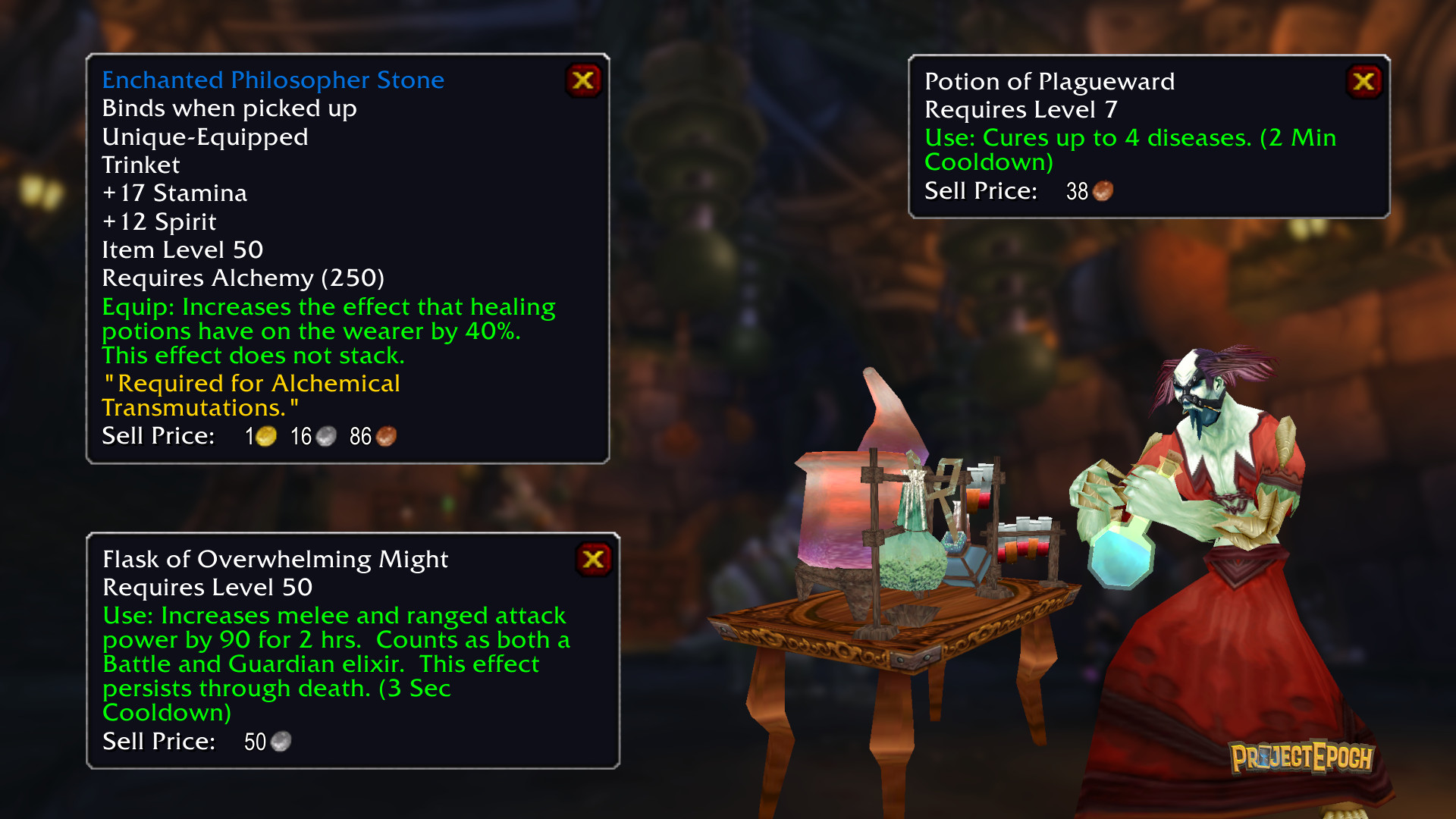 Professions are an integral part of the game, and they mean different things to different people. Do you want to become a popular crafter, known in the community for having a specific recipe? What about maximizing your character's potential and choosing the profession that gives you the most power? Or do you want to be a gatherer, traversing the dangerous parts of Azeroth for valuable trade goods to sell? At Project Epoch, we've made sure that we offer all of these things, so you can choose the path that you want.