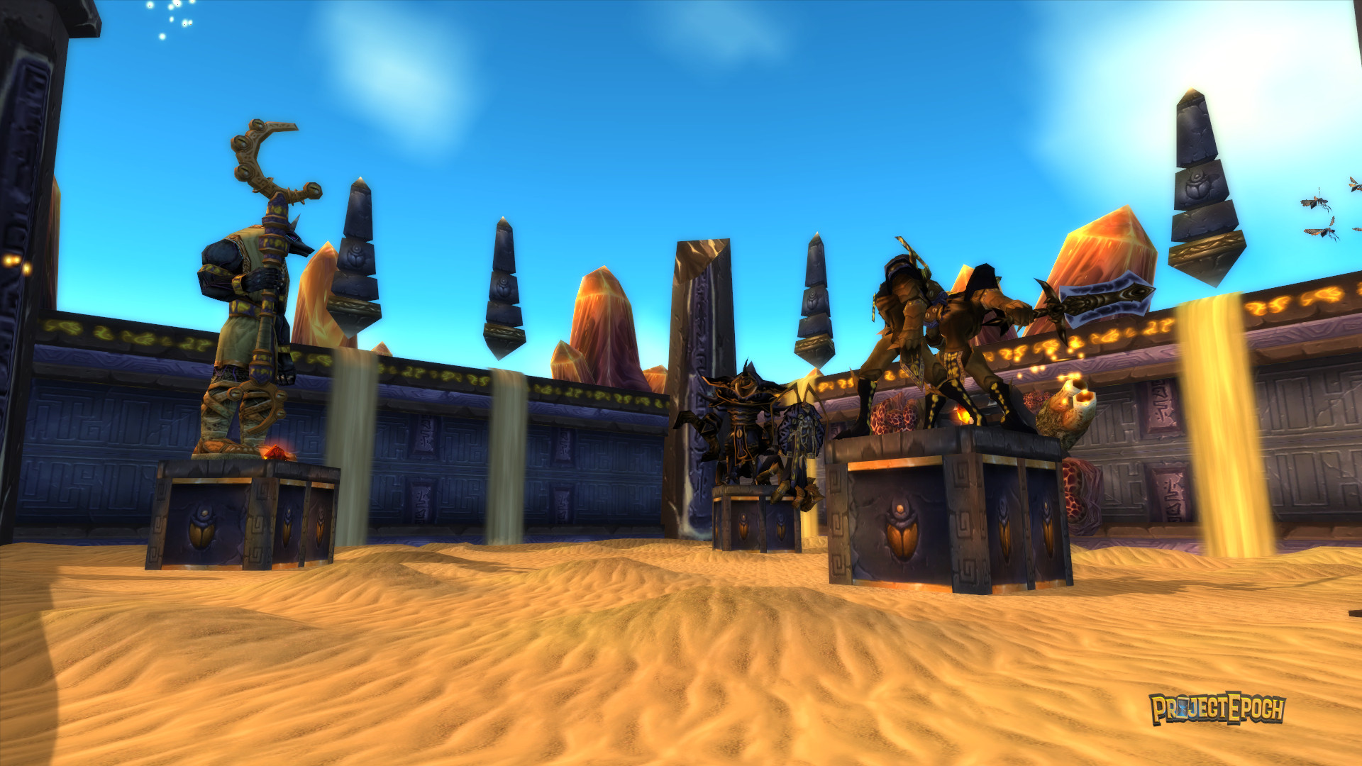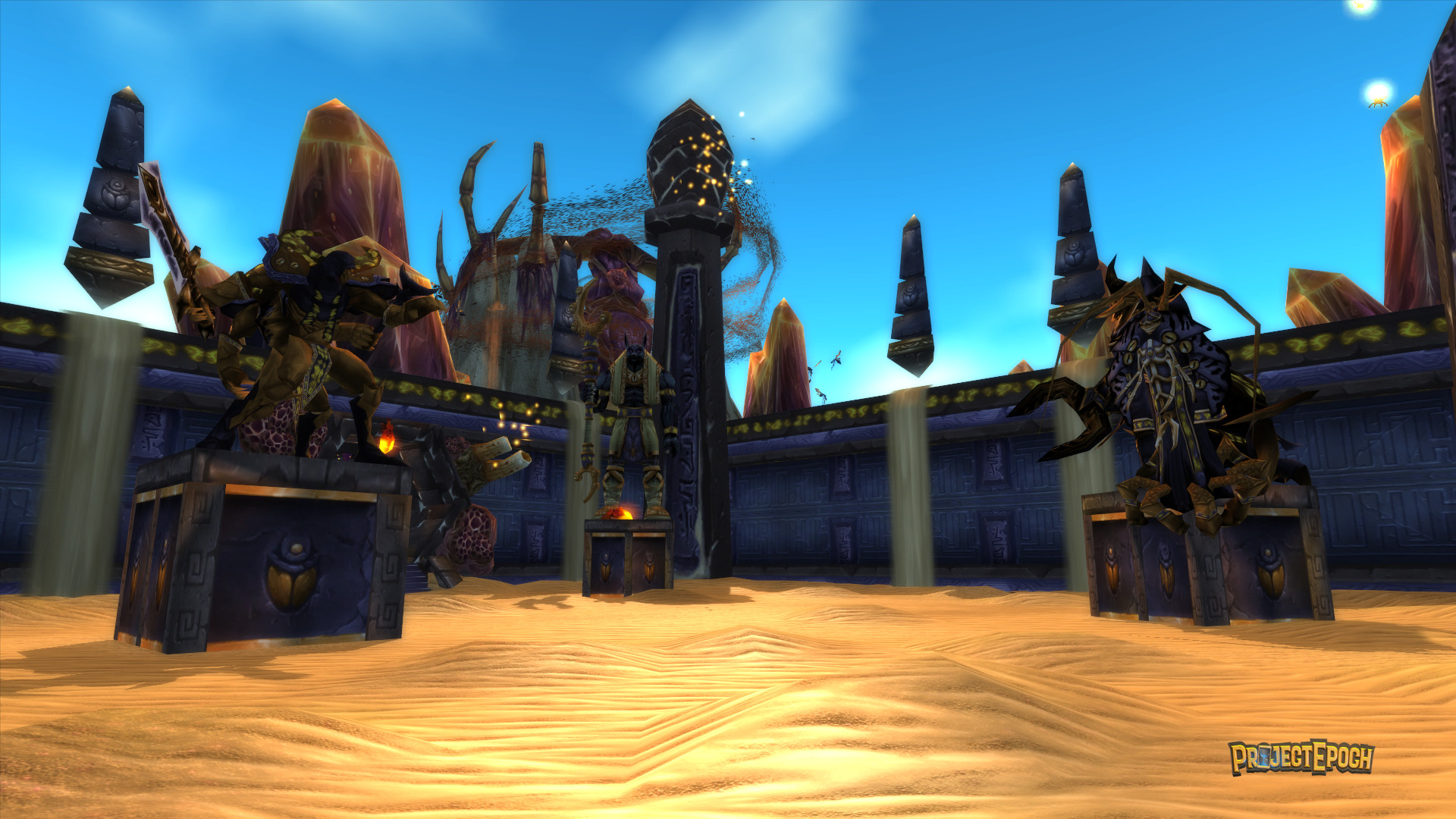 Once entombed beneath the sands of Silithus, the Scarab Pit has been unearthed and restored as a site of sacred combat. This arena was a ceremonial proving ground for the Qiraji, where strength was offered in tribute to the old ways. Now, under the watchful gaze of ancient champions and forgotten gods, warriors from across Azeroth are called to shed blood in ritual battle.