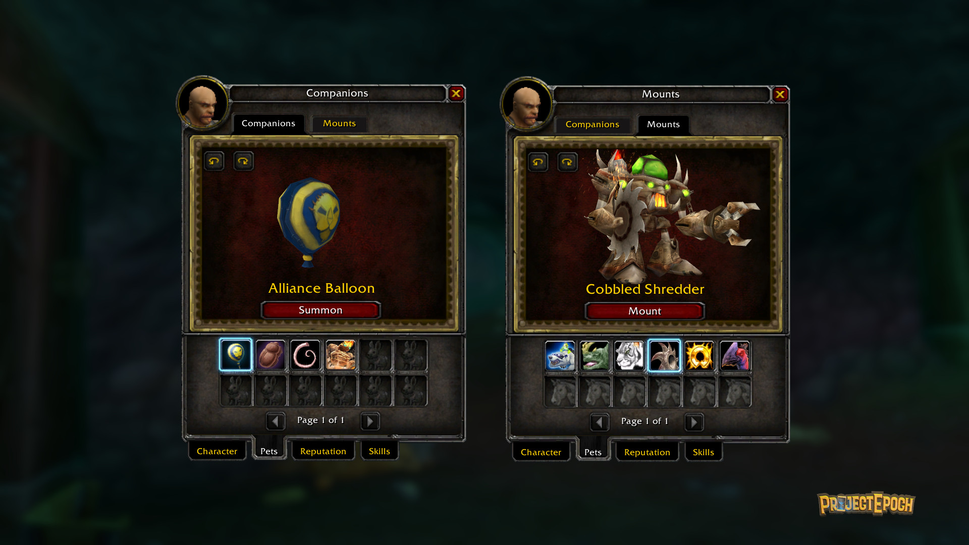 In Vanilla, mounts and cosmetic pets took up valuable bag space, crowding your inventory. We've preserved the Collections tabs from Wrath of the Lich King, giving these treasured collectibles their own dedicated home. With mounts and pets accessible at any time without cluttering your bags, you can enjoy a cleaner inventory while showing off your favorite companions wherever your adventures take you.