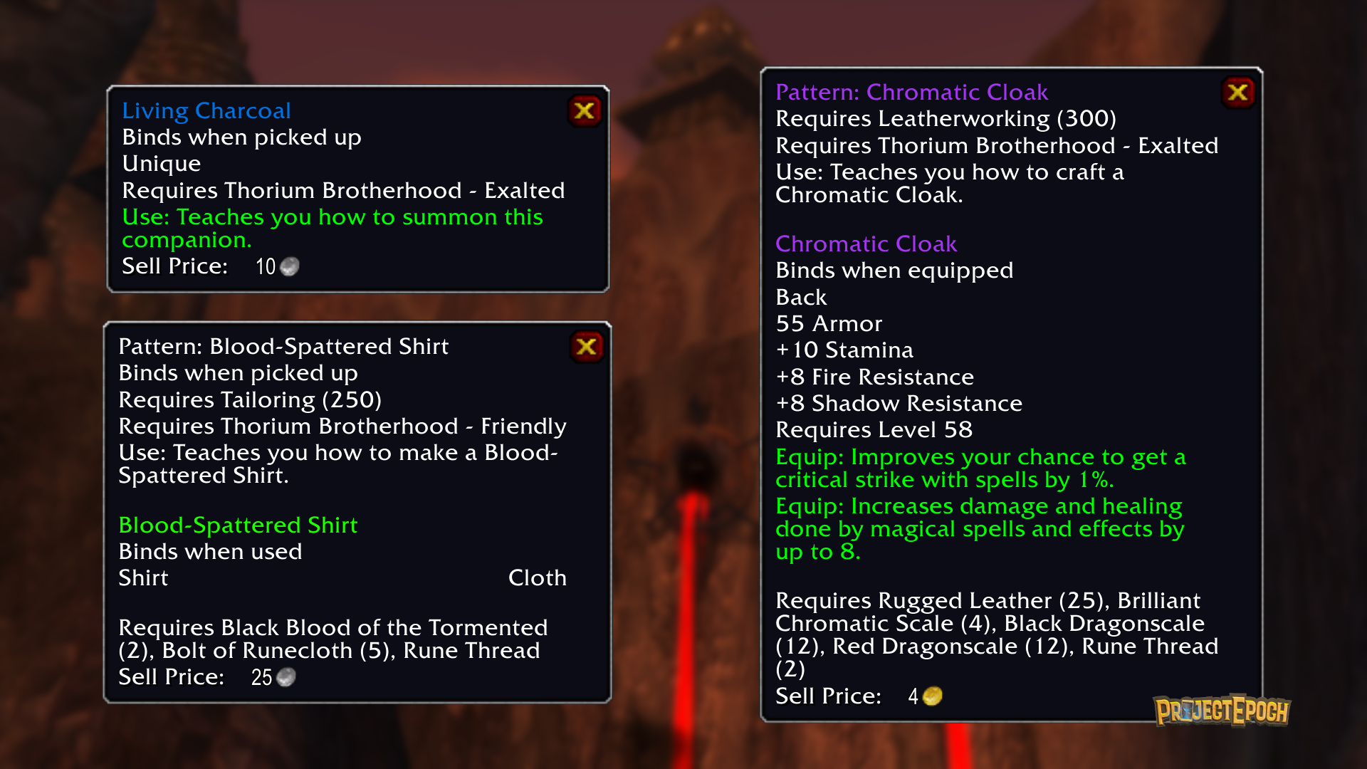 The most trusted allies of the Thorium Brotherhood earn access to the most elite craftsmanship techniques, including legendary weaponry, high-tier armor, exclusive enchantments, a rare companion, and a distinctive tabard.