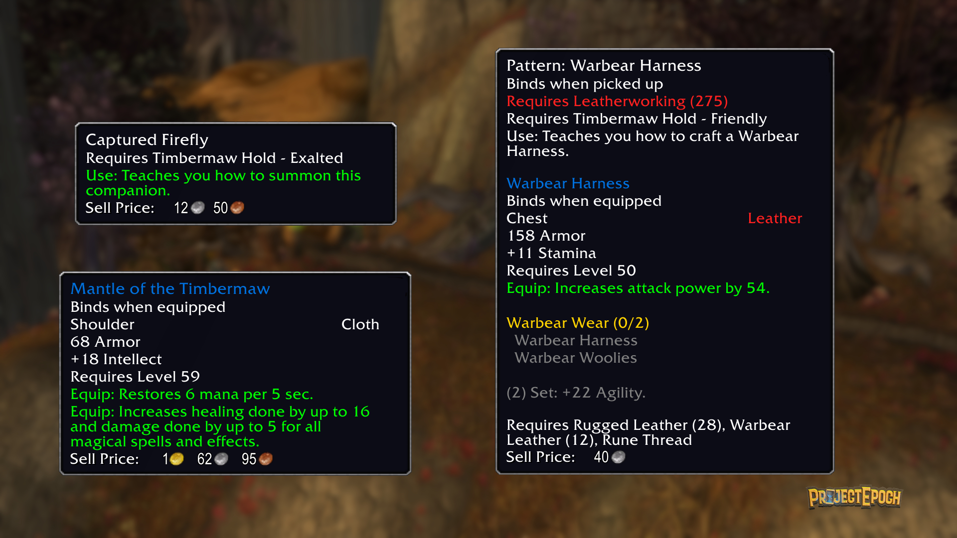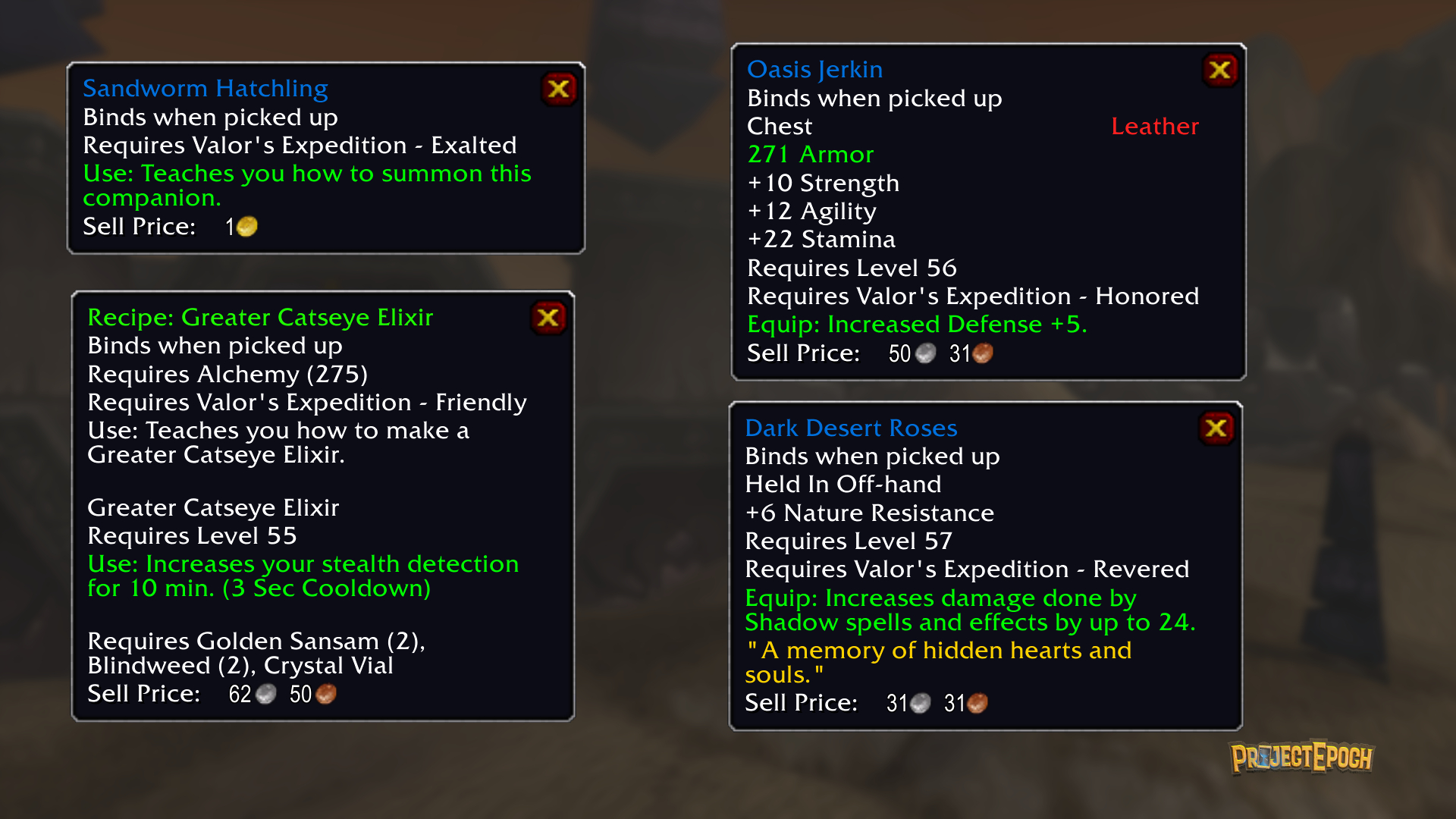 Factions and reputations are a core part of World of Warcraft’s identity, and Project Epoch enhances this with multiple new factions to align with—each offering unique rewards. We've also made targeted tweaks to existing reputation gains and vendor offerings to make the experience feel more rewarding without straying far from its classic roots.