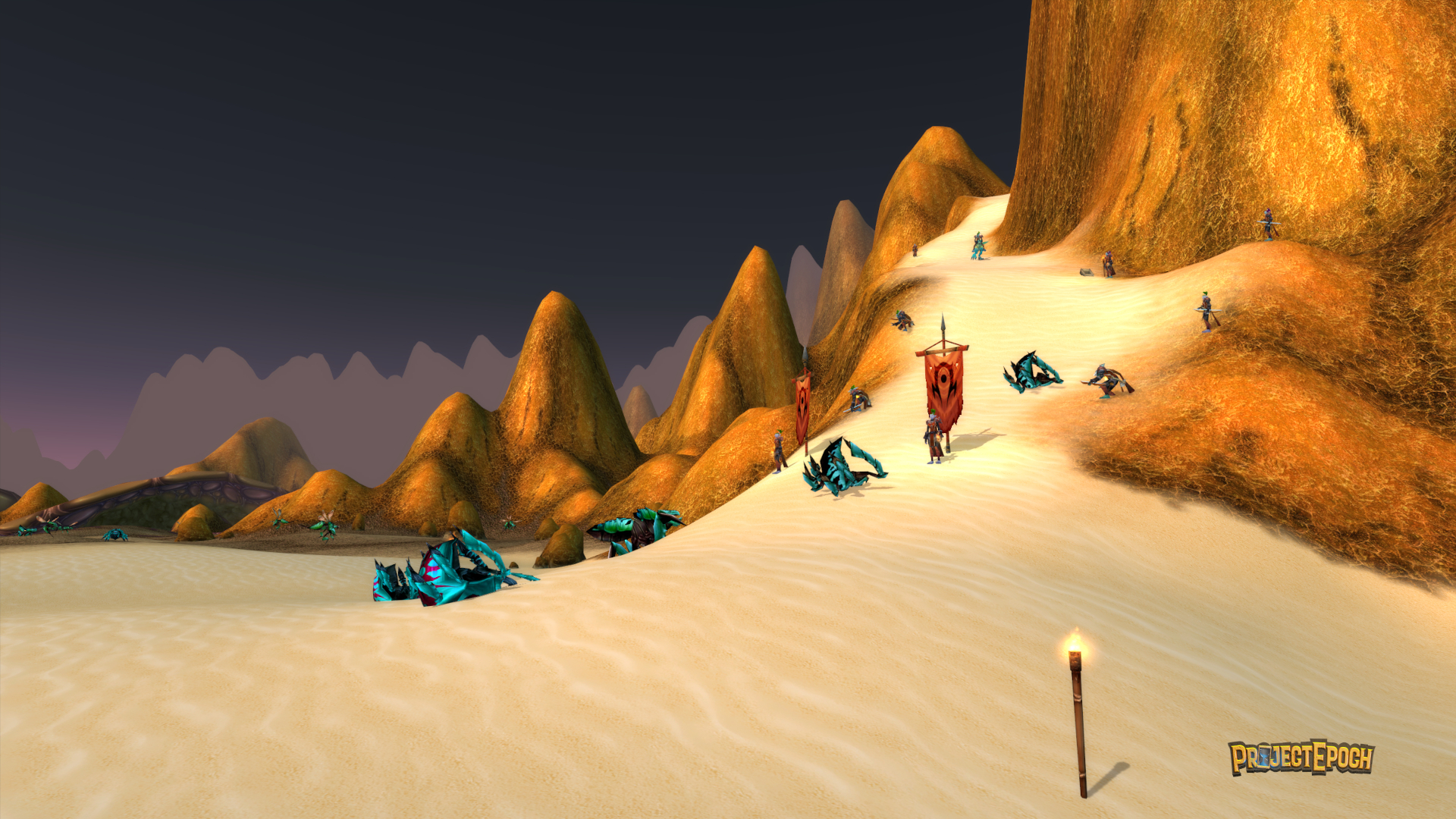Concerned by the growing Silithid presence creeping up Kalimdor the Horde led by the Darkspear have created a new forward operating base within the sandy cliffs of Tanaris known as Anje'Watha. Working with the Horde's most powerful Shamans to ensure they can maintain this locale and drive the Silithid deep into their burrows you will uncover whole new adventures.