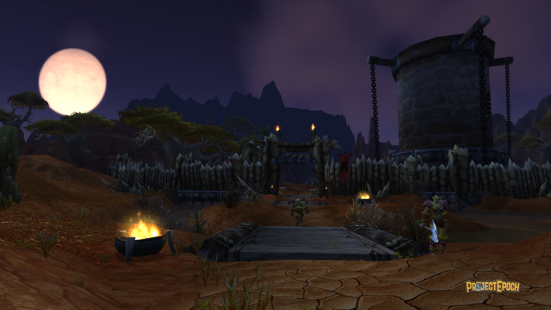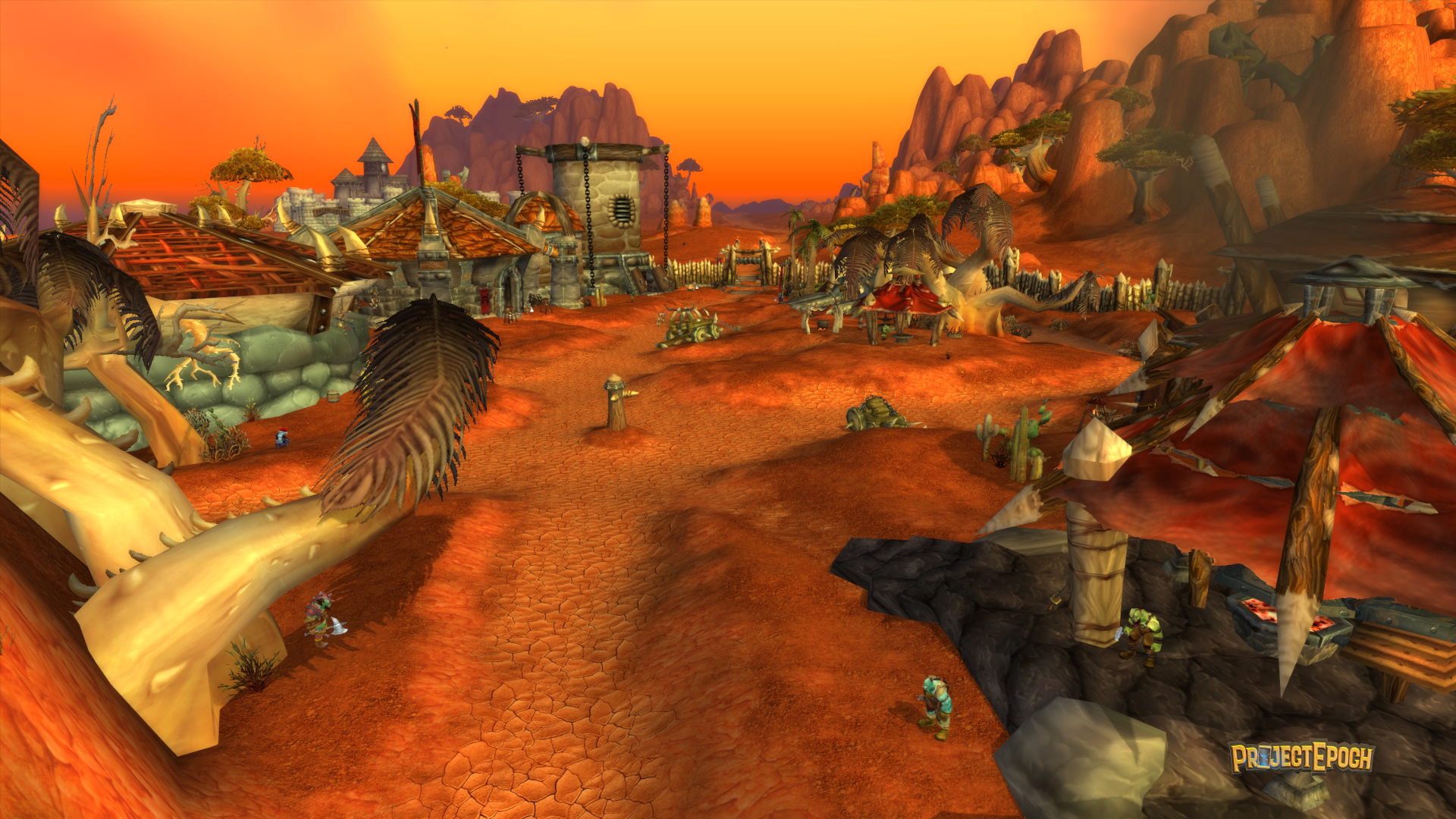 Once a humble outpost, Razor Hill has been completely revitalized into a thriving hub of Horde activity. Goblins labor tirelessly on a grand zeppelin tower that promises to connect the red sands of Durotar to distant lands, while the town itself now brims with new purpose and strength.