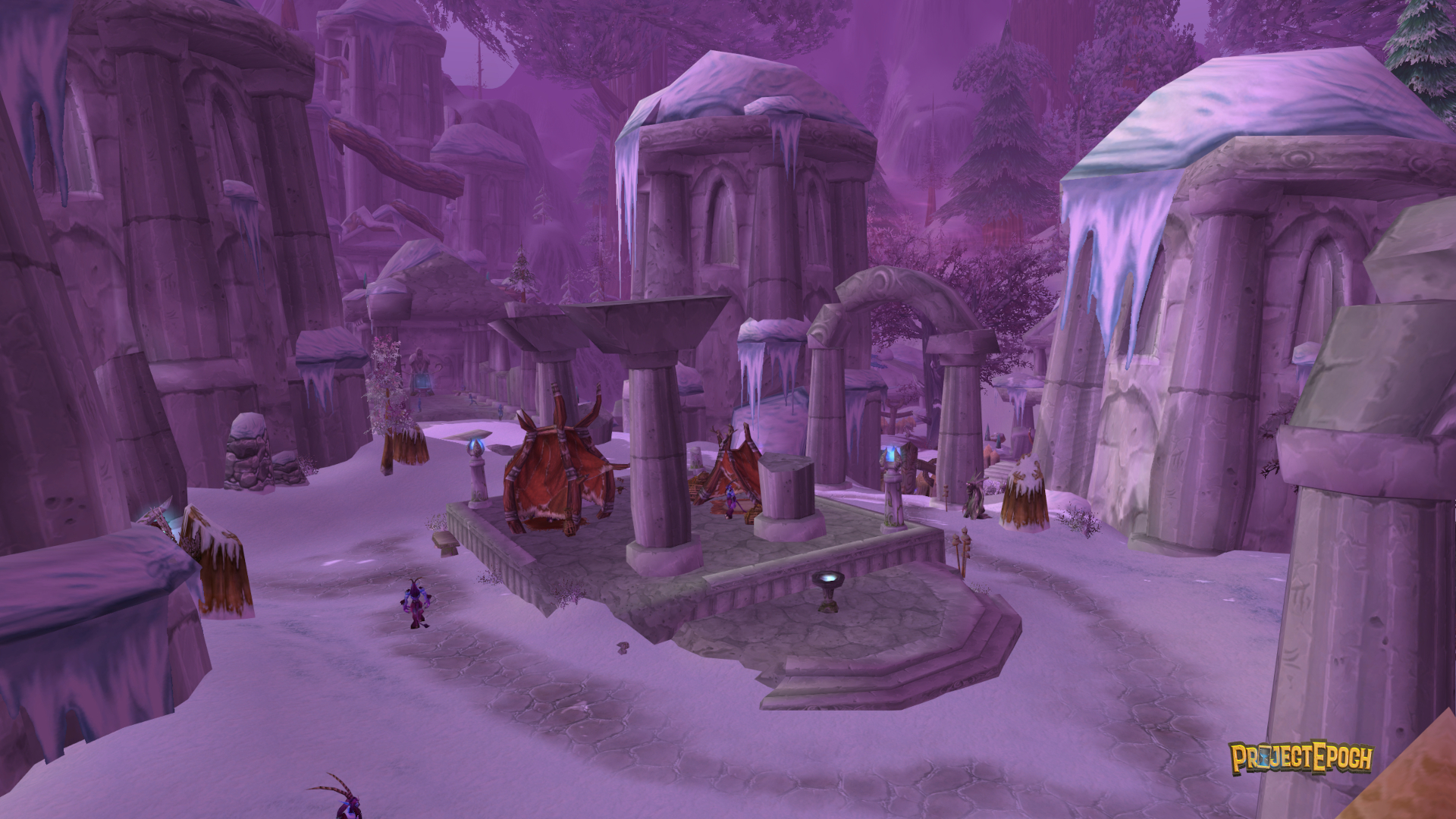 While some of the Highborne at Teles'aran withered away, others gave in to the temptation of demonic power. Located in the northeastern corner of Winterspring, this new quest area features several chains for high level players. Adventurers looking to explore the ruins of this ancient city will find victims of both fates -- and hidden secrets locked away.
